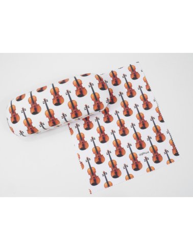 Piękne, sztywne i eleganckie etui na okulary ze wzorem skrzypiec; rozmiar ok. 16,5*6,5*3,5 cm. Bardzo przydatnym dodatkiem jest mikrofibra (wym. 15*18 cm) do czyszczenia okularów, również ozdobiona 'skrzypcowym' nadrukiem.