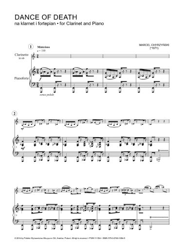Utwór Dance of Death (Taniec śmierci) na klarnet i fortepian powstał we wrześniu 2013 roku na zamówienie klarnecisty Macieja Bosaka. Prawykonanie odbyło się 25.11.2013 roku podczas XXI Encuentro Universitario de Clarinete w Meksyku, a wykonawcami byli Maciej Bosak (klarnet) i Laura Elizabeth Hauer (fortepian). Wprowadzony na początku utworu w głosie klarnetu motyw śmierci przenika całą kompozycję nadając jej spójności, a także wprowadza niepokój w całym utworze tworząc wrażenie obsesyjnego tańca. Wrażenie to potęguje zastosowanie zdobień w motorycznie powtarzających się sekwencjach szesnastkowych, a także częstych zmian rejestrów. Przeważająca część Dance of Death utrzymana jest w dynamice , co podkreśla burzliwość emocjonalną kompozycji, jedynie środkowe tranquillo wprowadza moment odprężenia i zatrzymania tytułowego, gwałtownego tańca śmierci. Kompozytor w pełni wykorzystał możliwości techniczne i barwowe klarnetu. Niski rejestr instrumentu idealnie wyraża tajemniczość, natomiast wykorzystanie dźwięków z najwyższej skali podkreśla dramatyzm. Podobnie jak w Preludiach na klarnet i fortepian kompozytor nie rezygnuje ze związków z tonalnością. [Barbara Borowicz]