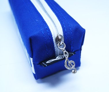 Niebieski piórnik z motywem klawiatury. Świetny do szkoły (nie tylko muzycznej).
